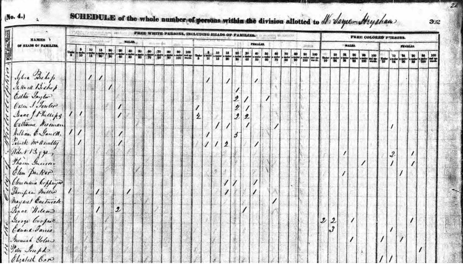1840 Census, George Cooper, Pine Ward, Philadelphia