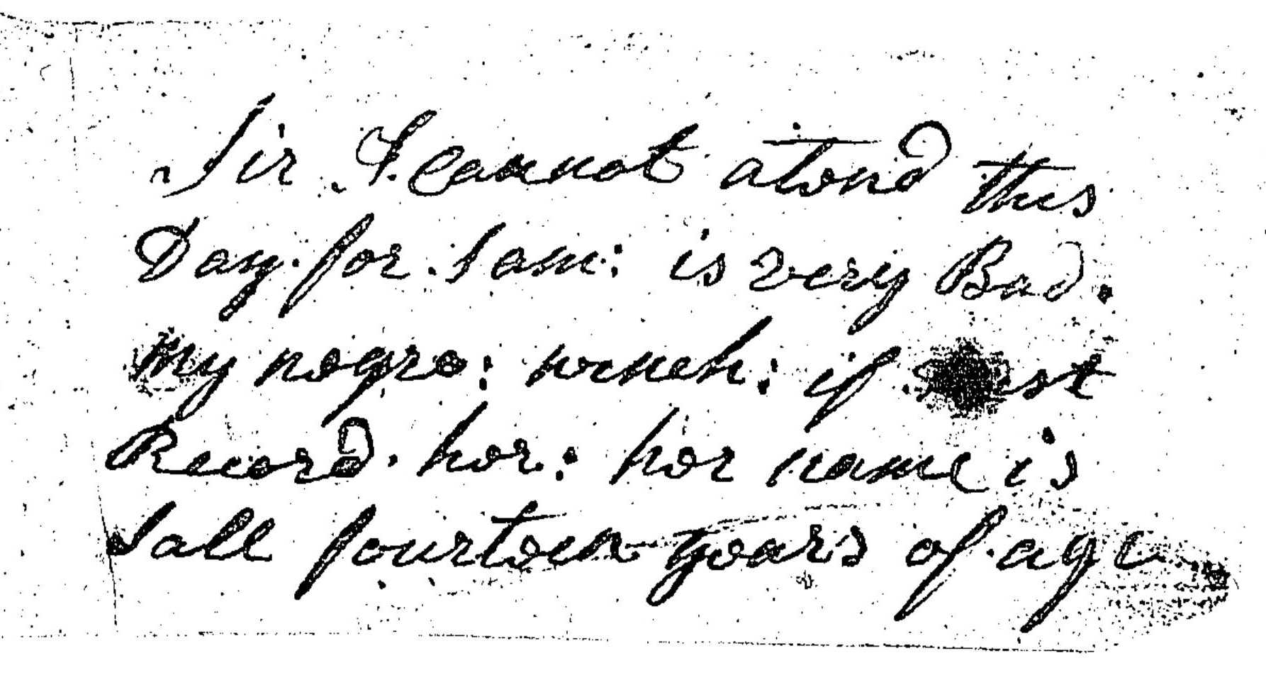 Sall was registered as a lifetime slave in Bedford County on October 28, 1780 by Adam Holliday’s brother, William. Probate records suggest that Sall had at least three children, Duncan, Mave, and Hannah, who experienced term slavery under Pennsylvania’s gradual abolition law. When William passed away in 1796, he bequeathed Duncan, Mave, and Hannah to three different heirs, breaking up Sall’s family in order to enrich his own. Sall does not appear by name in William’s last will and testament.