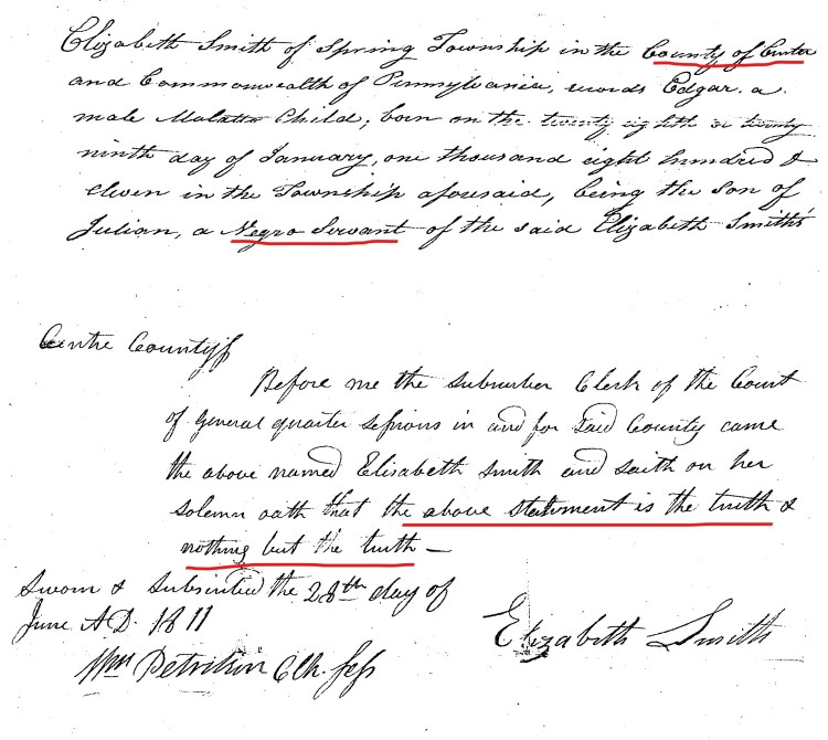 The Centre County records contain only fifteen registrations, the fewest of any extant county slave registry in Pennsylvania. Here is the data.