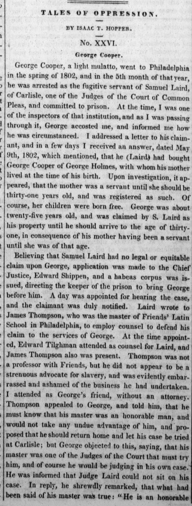 Sources: Cumberland County Slave Return; Cumberland County Slave Register; 1840 census (inferred); Daniel E. Meaders, Kidnappers in Philadelphia: Isaac Hopper’s Tales of Oppression, 1780-1843 (New York: Garland, 1994), 146-7